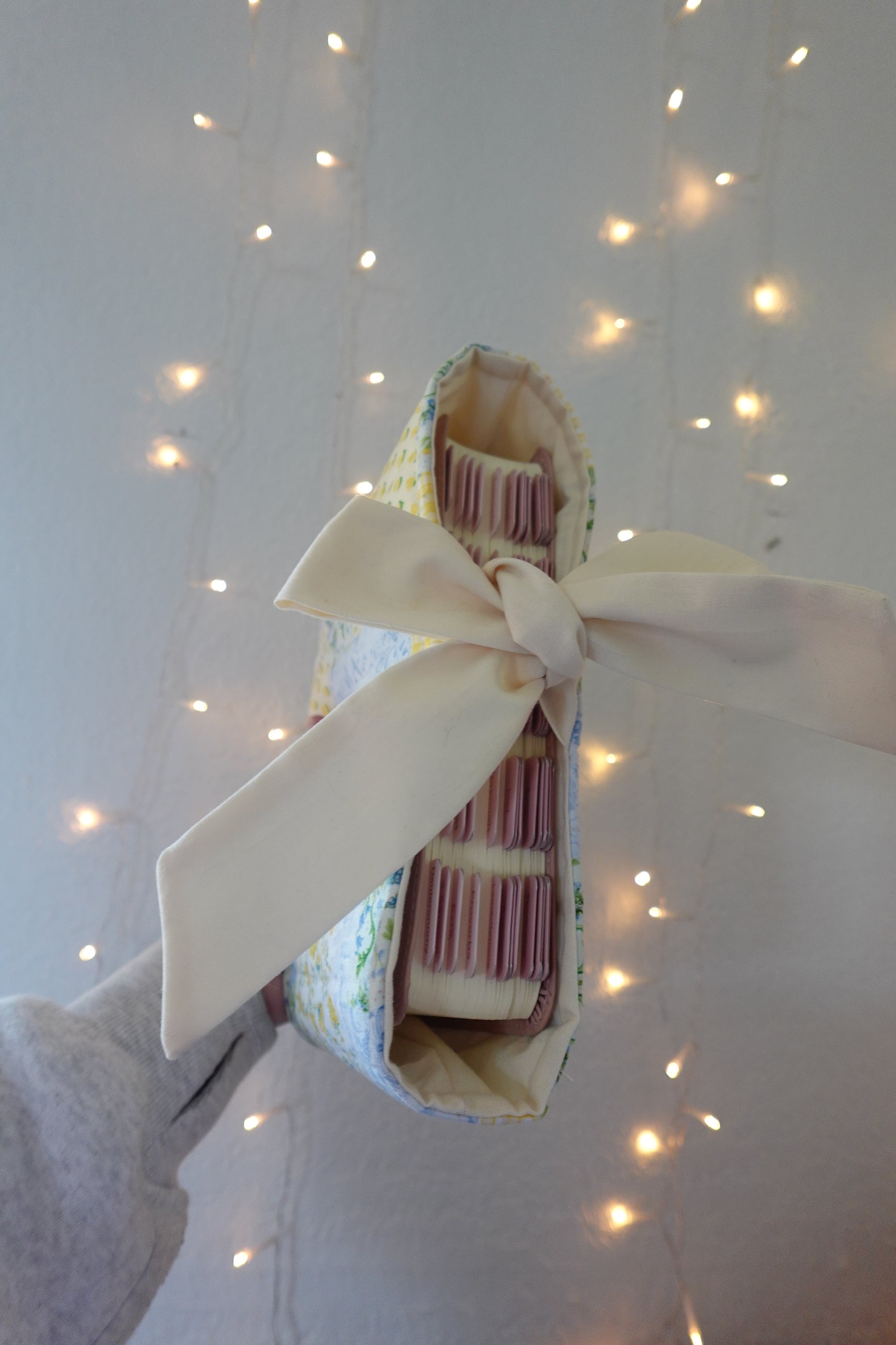 Material & Design: Sunny yellow and soft blue floral patchwork with ivory lining (design may vary due to patchwork nature)