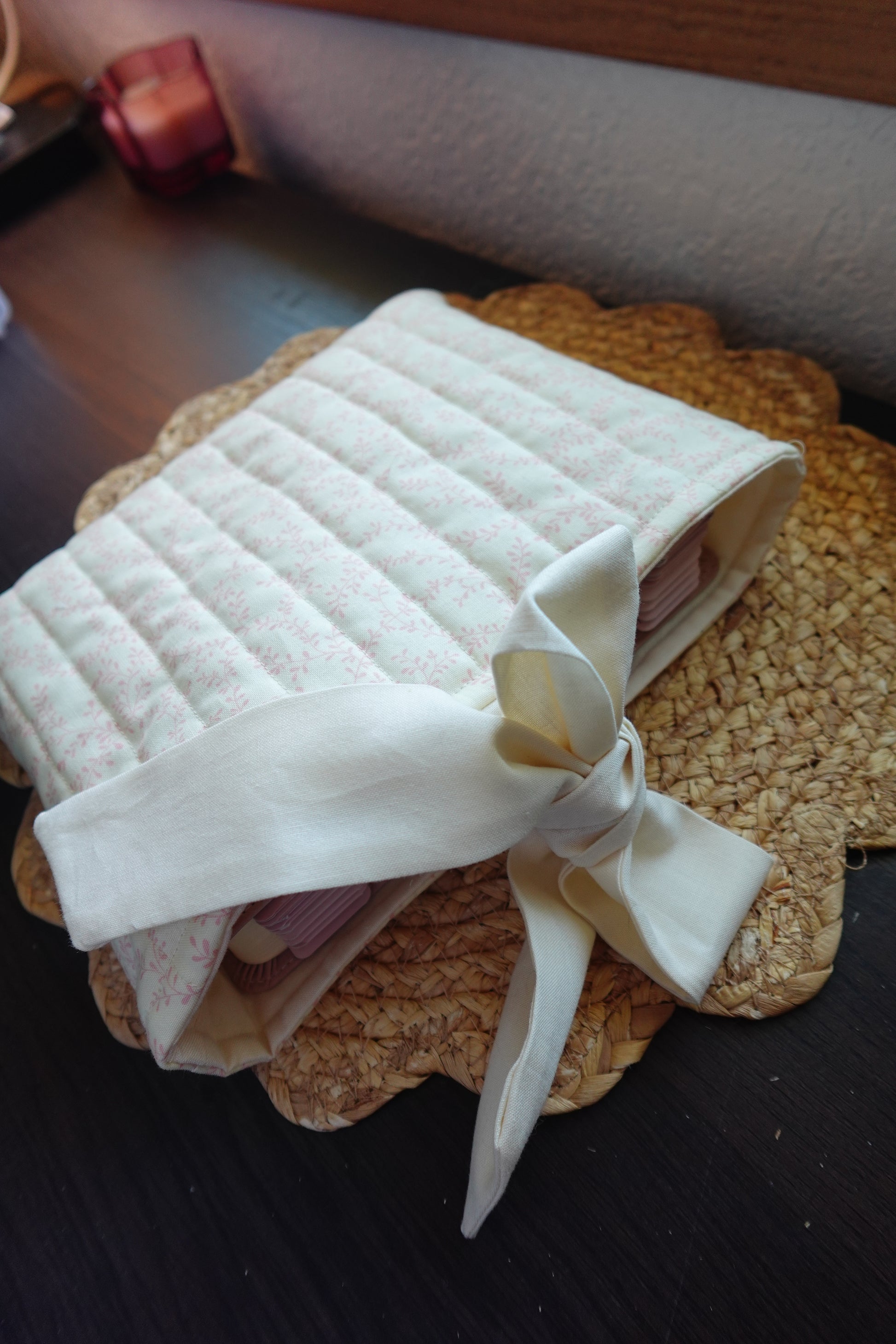 Material: Creamy ivory cotton fabric with soft blush-pink leaves